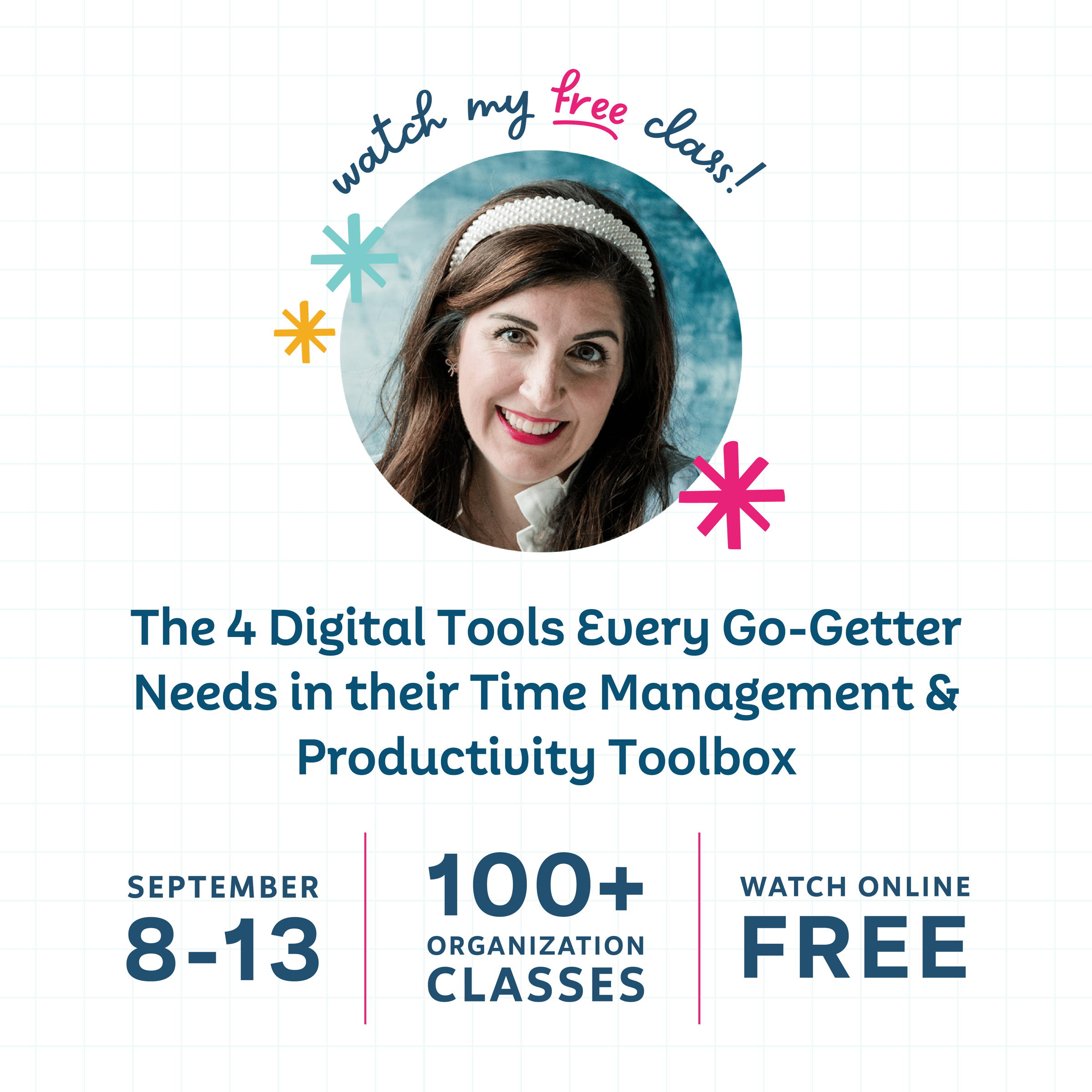 My session airs Tuesday, September 9th at 4:00 PM ET, and I’ll be sharing all about The 4 Digital Tools Every Go-Getter Needs in Their Time Management and Productivity Toolbox. You won't want to miss it!